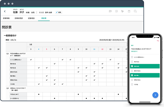 患者様は診察前に症状などの問診をスマートフォンで入力します。