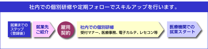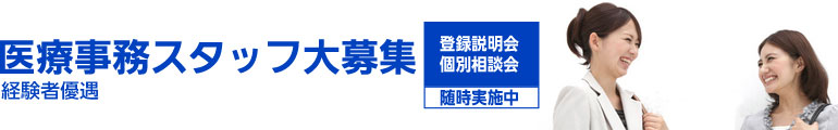 | 待遇 | 社会保険完備、有給休暇、交通費全額支給、就職前研修・マナー・医療事務指導有 |