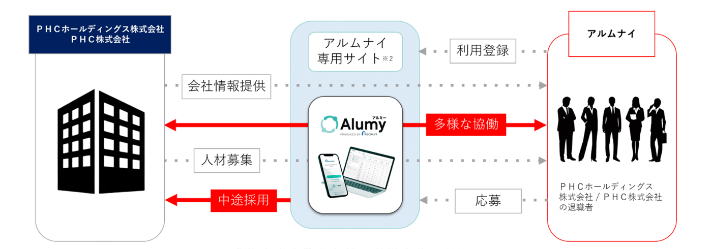 PHCグループは、このたび、当社を退職した元社員を対象としたアルムナイ専用サイト「PHCキャリアコネクト」を開設しましたので、お知らせします。
