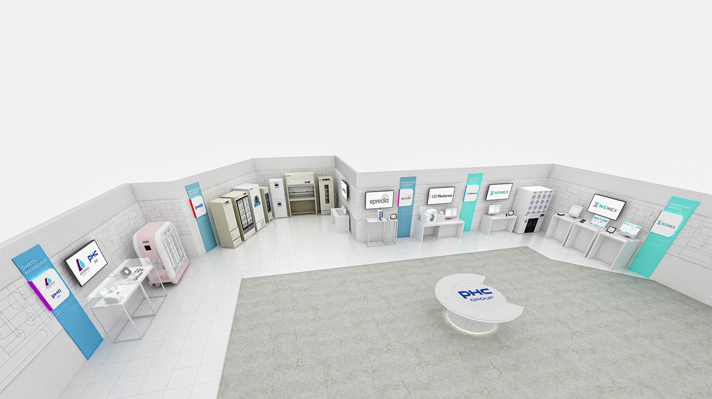 THE PHC GROUP VIRTUAL SHOWROOM 研究 診断・治療 検査・予防 診断・治療Diagnostics & Treatment SARSコロナウイルス抗原キット製品・サービスの詳細 インフルエンザウイルスキットSARSコロナウイルス抗原キット製品・サービスの詳細 インフルエンザウイルスキット製品・サービスの詳細 移動式免疫発光測定装置製品・サービスの詳細 保険薬局用電子薬歴システム製品・サービスの詳細 診療所用電子カルテシステム検査オーダーシステム 連携製品・サービスの詳細 研究Research 超低温フリーザー製品・サービスの詳細 CO2インキュベーター製品・サービスの詳細 ライブセル代謝分析装置製品・サービスの詳細 薬用冷蔵ショーケース製品・サービスの詳細 病理ホールスライドスキャナー(研究用機器)製品・サービスの詳細 検査・予防Testing & Prevention of Disease 血糖値測定システム製品・サービスの詳細 持続グルコース測定システム製品・サービスの詳細 Tokyo Headquarters SHOWROOM CORPORATE OVERVIEW 会社概要 糖尿病マネジメント、診断・ライフサイエンスおよびヘルスケアソリューションの事業領域において、 その主力製品・サービスを世界125以上の国と地域で患者さまや医療従事者、 研究者の皆さまにお使いいただいています。 詳しい情報はこちら MISSION, VISION, VALUES わたしたちは、たゆみない努力で 健康を願うすべての人々に新たな価値を創造し 豊かな社会づくりに貢献します 経営理念・ビジョン・価値観 HISTORY PHCグループは、50年の歴史で培ったモノづくりの基盤と高い技術力で、画期的な製品を生み出し、 ヘルスケア業界を牽引してきました。 沿革