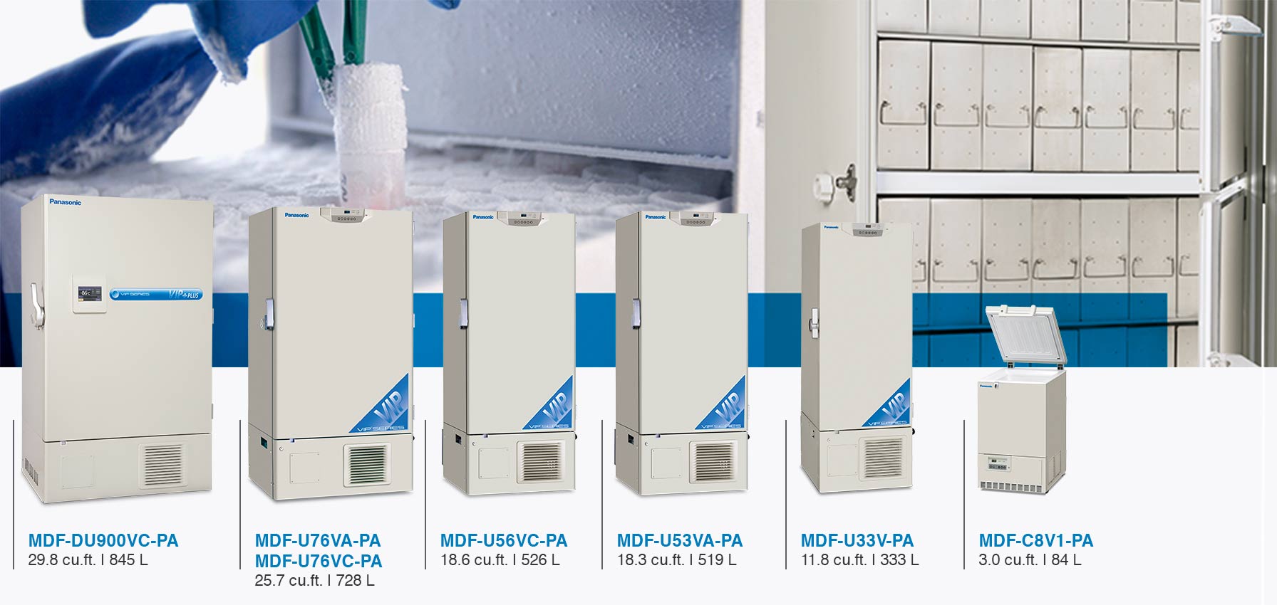 Panasonic offers six sizes of VIP Series freezers. Select from compact 3.0 cu.ft. to large 29.8 cu.ft. freezers designed for high volume storage in biorepositories and biobanking.