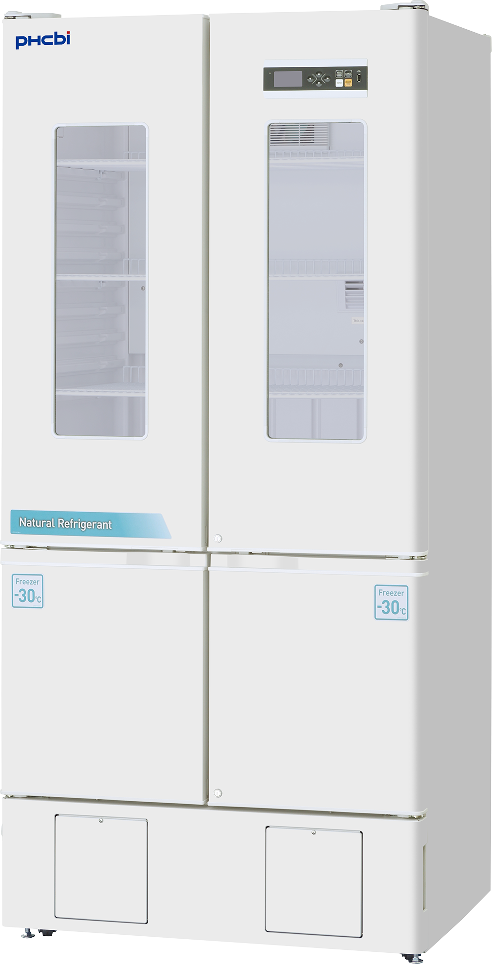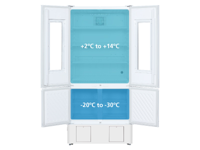 This high-capacity cabinet combines pharmaceutical refrigeration and a -30°C freezer within a single footprint. Offering 16.5 cu. ft. of refrigerated space and 6.7 cu. ft. of freezer capacity, it provides expanded storage for vaccines and biologicals. Natural refrigerants reduce environmental impact, delivering a sustainable, energy-efficient solution.