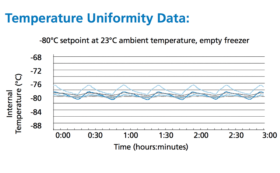 Opening the door of an ultra-low temperature freezer is not an insignificant event. Due to extreme temperature differentials, users should know the location of stored product inside the freezer to minimize the duration of the door opening. Best practices lead to better chamber uniformity, faster recovery of setpoint temperature and overall longer freezer life as a result of reduced strain.