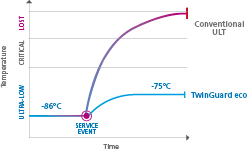 Superior and reliable preservation of your biological samples cannot be compromised for any reason. The primary purpose of a -86°C/-80° ultra-low temperature freezer is to protect a stored biological by achieving and maintaining uniform temperature to assure cell viability, regardless of where samples are stored inside. PHCbi TwinGuard Series -86°C/-80°C ultra-low temperature freezers undergo thorough temperature uniformity testing allowing us to provide our customers with temperature uniformity data that upholds our excellent performance.