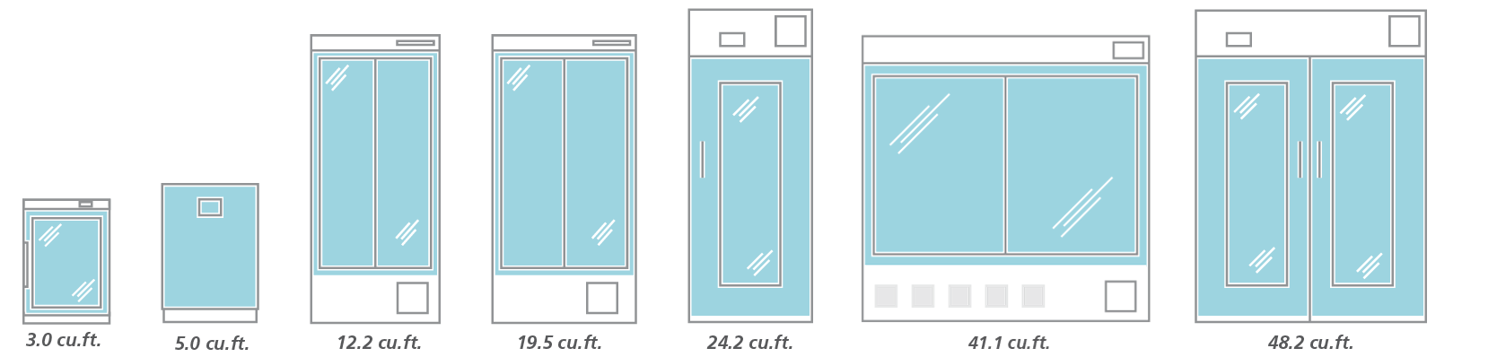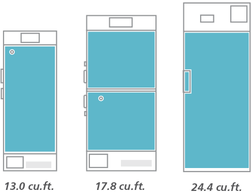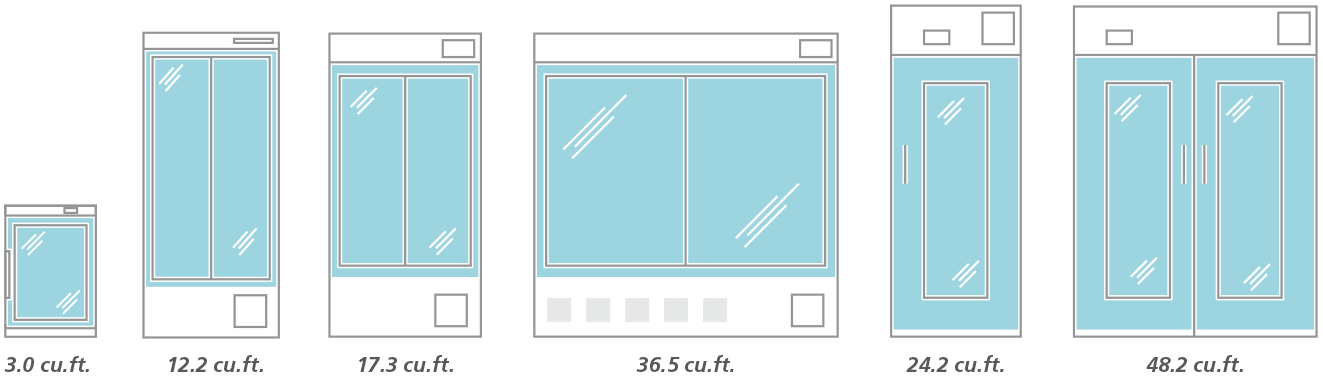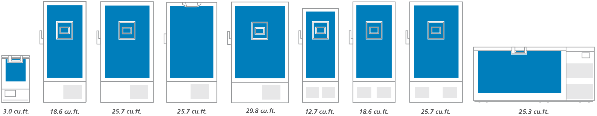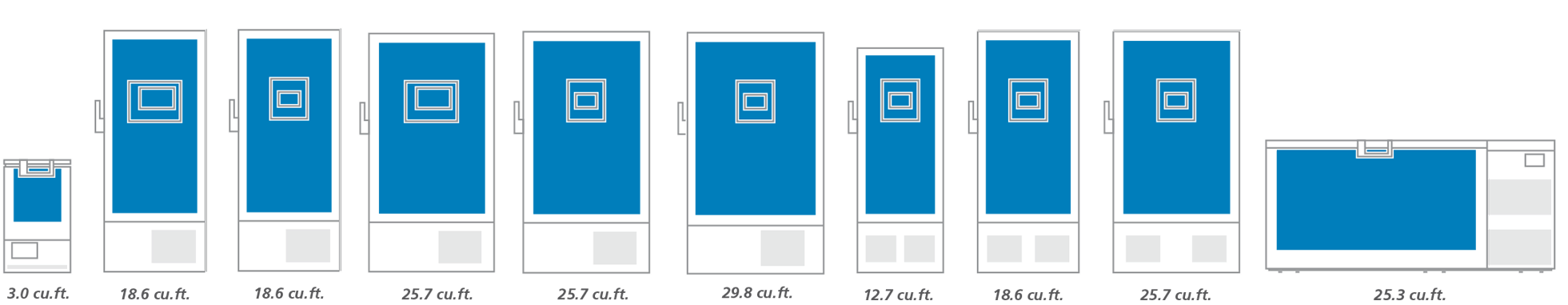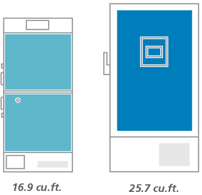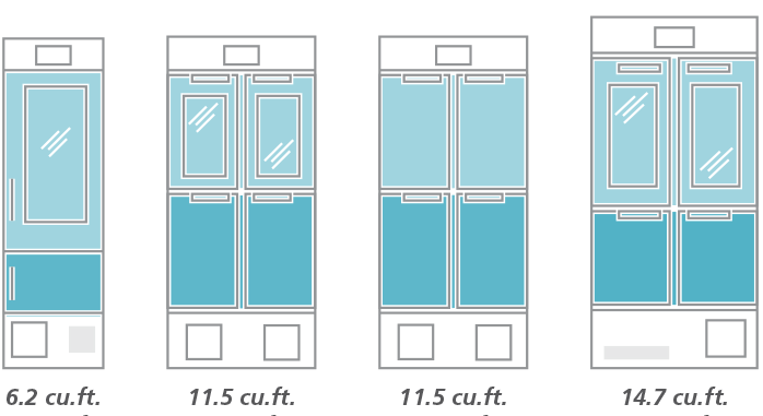 Space-saving cabinets designed for both refrigerator and freezer functions in the same footprint. Refrigerator and freezer systems are independent for maximum stored product safety.